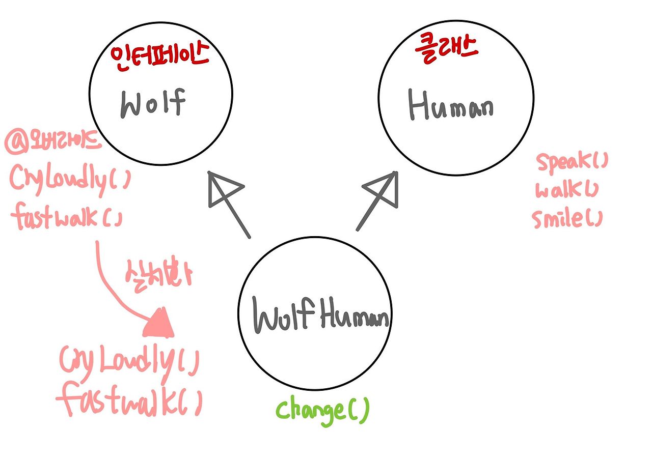 wolfHuman.fastWalk(); //์ค๋ฒ๋ผ์ด๋ ์ ์ํ ์ถ์๋ฉ์๋(Wolf)