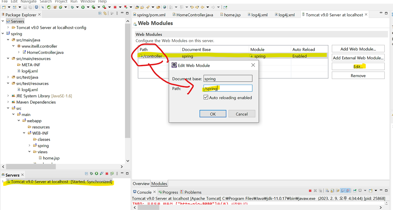 - spring이라는 프로젝트 외 다른 프로젝트를 만들면 똑같이 localhost:8000/controller/로 인식되어
