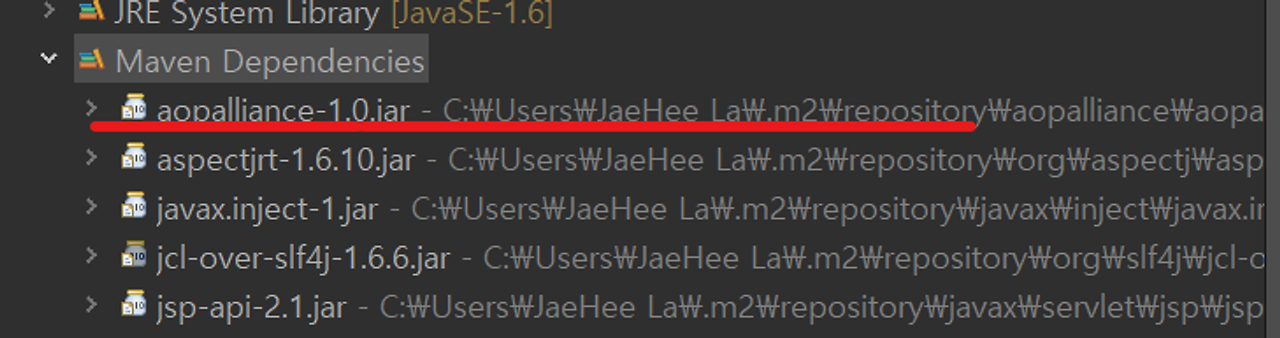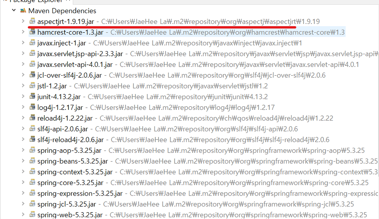 2) Maven Dependencies 라이브러리 (최소버전으로 빌드됨)