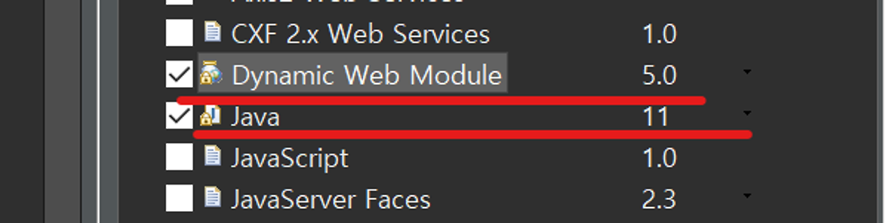 - 프로젝트에서 쓰는 JDK와 웹모듈 버전 변경