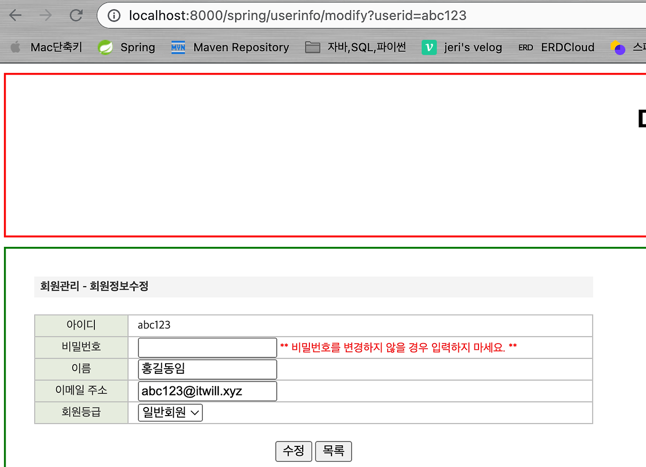 💚[JSP] user_modify.jsp - 회원정보 수정페이지