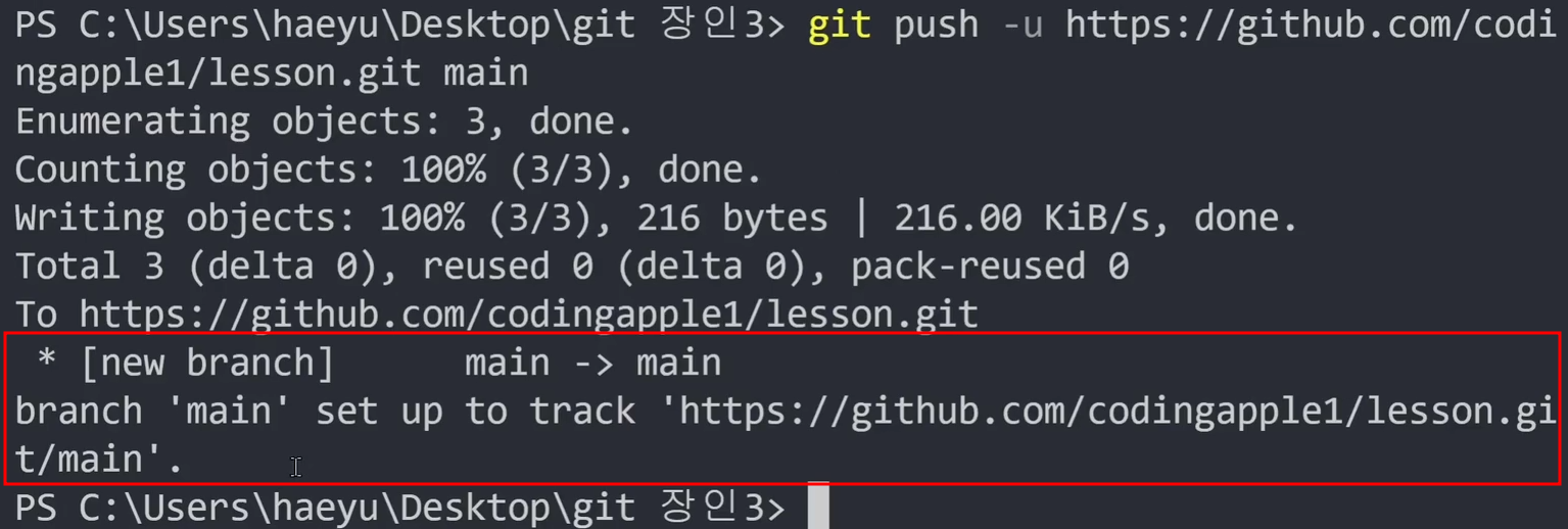 ## -u 붙여서 1번 했었으면 나중엔 git push 까지만 입력해도 알아서 잘됨