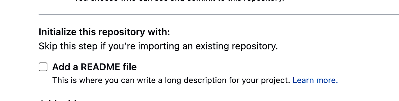 - 이미 깃이 관리하고 있는 파일을 업로드할 것이므로 아래의 사항은 미체크하기