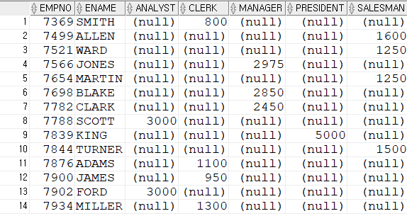 DECODE(JOB,'PRESIDENT',SAL) "PRESIDENT",