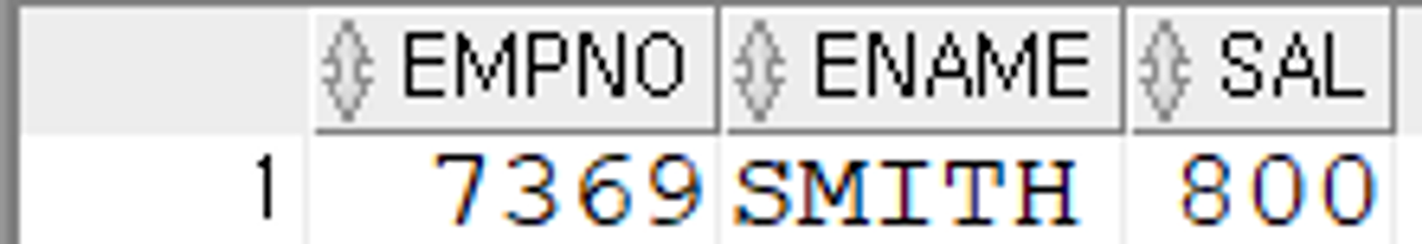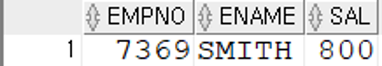 SELECT EMPNO, ENAME, SAL FROM EMP WHERE ENAME='SMITH';