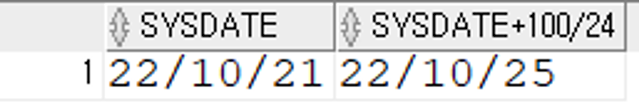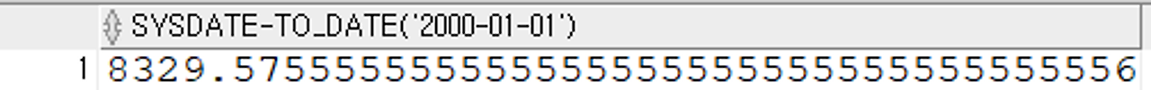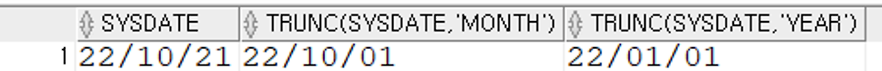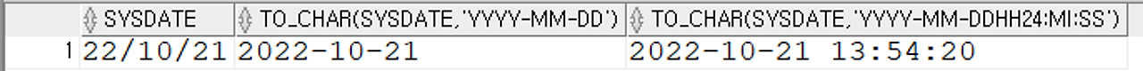 - SYSDATE 키워드의 검색값은 기본적으로 [RR/MM/DD]형식의 패턴으로 검색되지만 내부적으로 날짜와 시간을 제공함