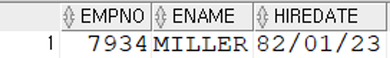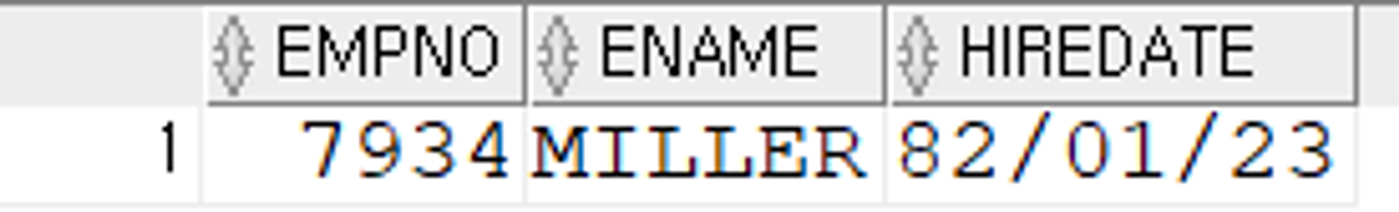 SELECT EMPNO,ENAME,HIREDATE FROM EMP WHERE HIREDATE LIKE '81%'; --세션환경마다 검색여부가 달라짐