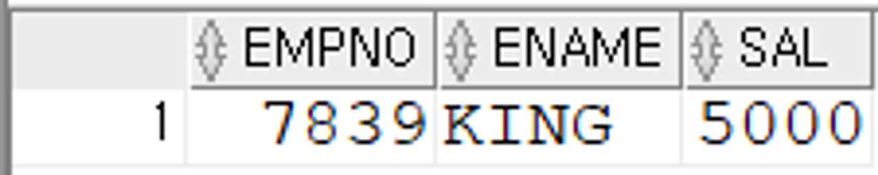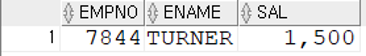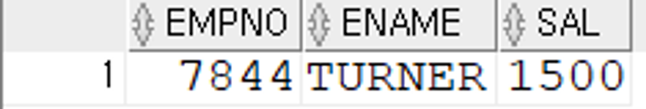 SELECT EMPNO, ENAME, SAL FROM EMP WHERE EMPNO=7844;