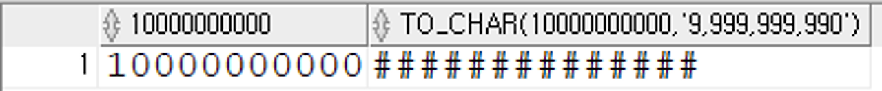 SELECT 10000000000, TO_CHAR(10000000000,'9,999,999,990') FROM DUAL;