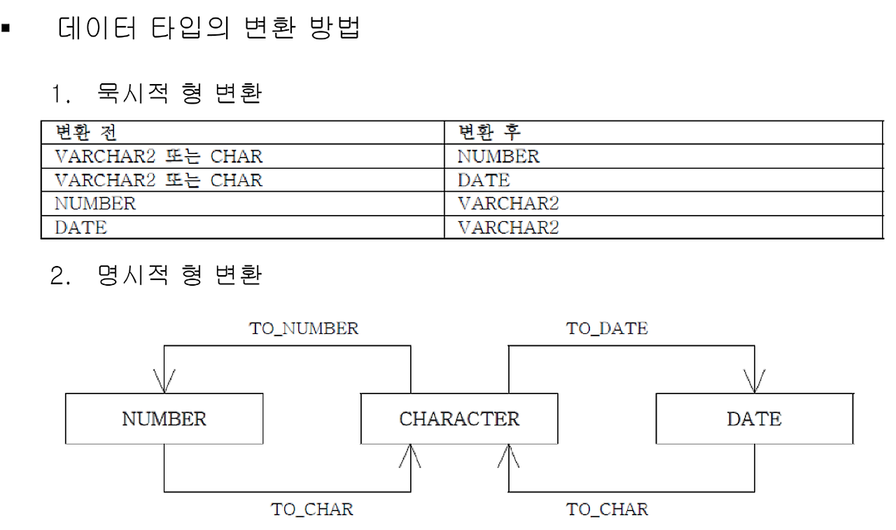- TO_NUMBER, TO_DATE, TO_CHAR