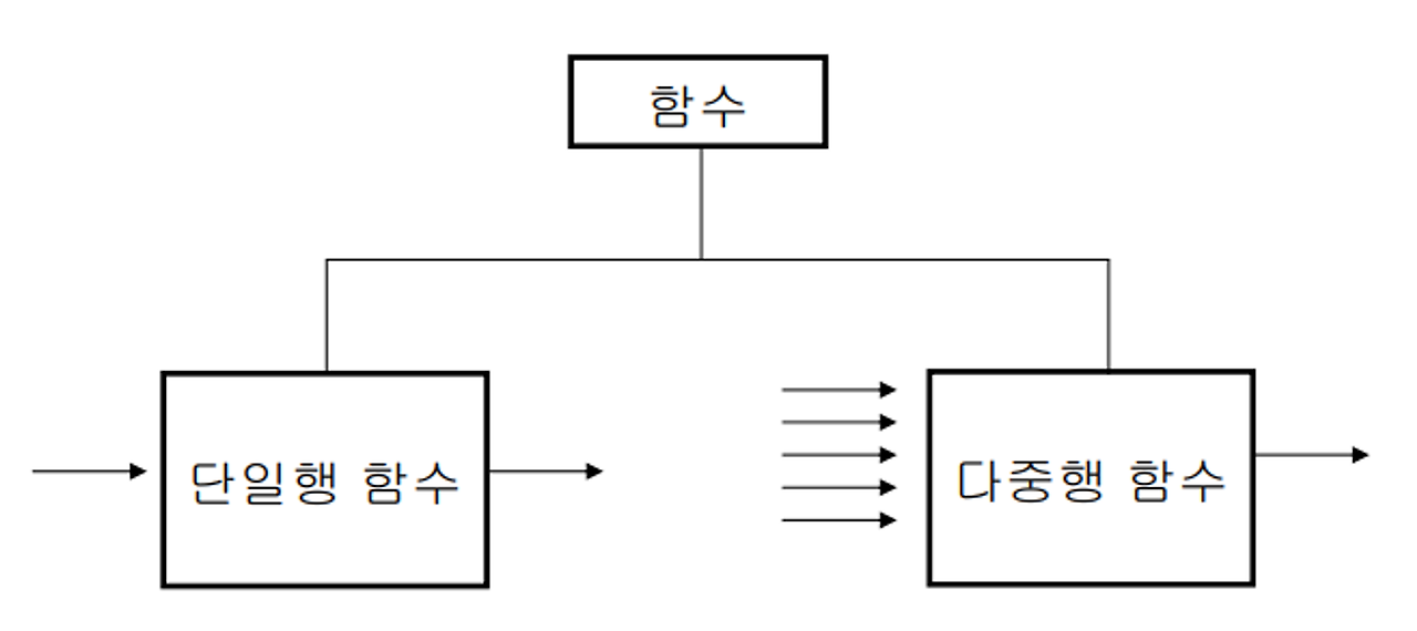 - 매개변수로 다수의 값을 전달받아 가공처리하여 결과값을 반환하는 함수