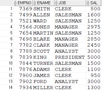 SELECT EMPNO,ENAME,JOB,SAL FROM EMP;