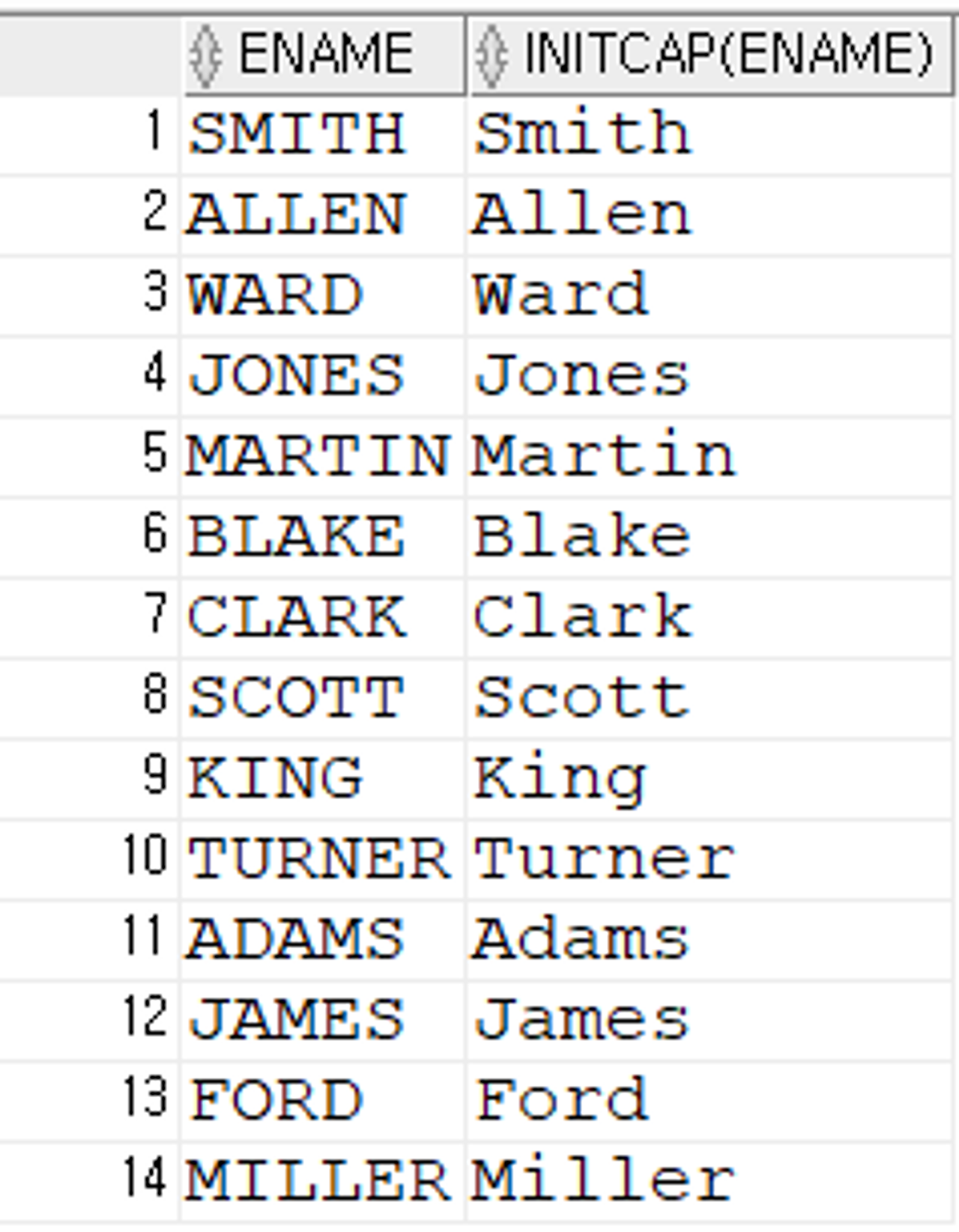 SELECT ENAME, INITCAP(ENAME) FROM EMP;
