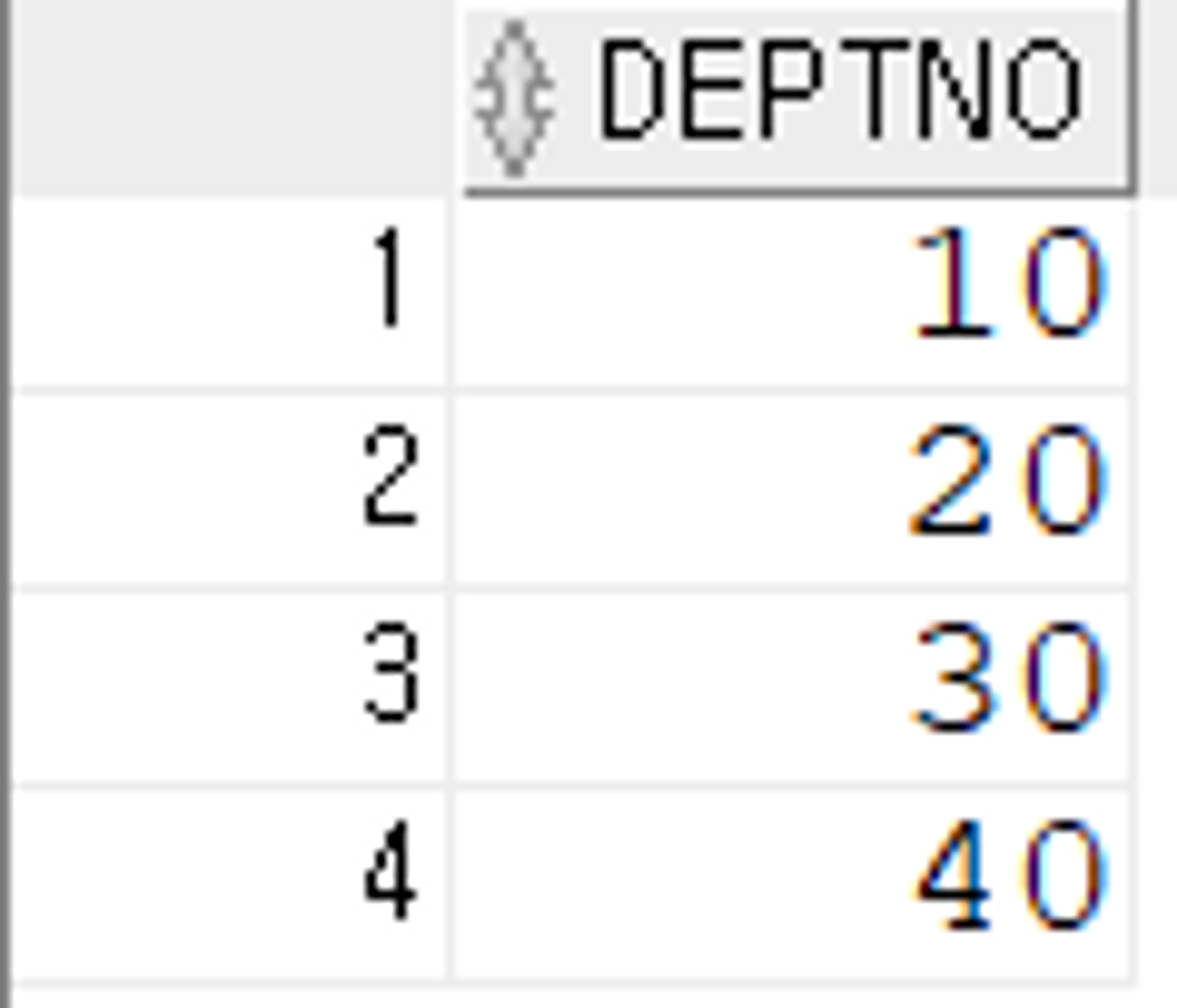 SELECT DEPTNO FROM DEPT; --검색결과 : 10, 20, 30, 40