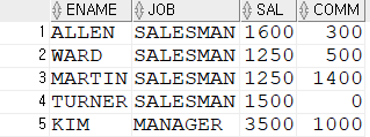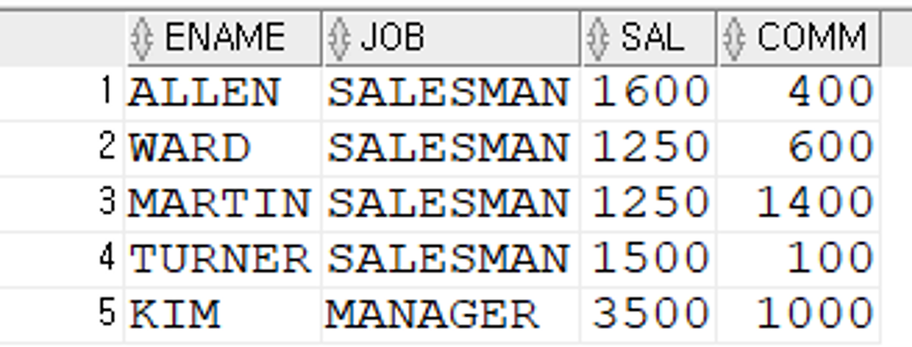 -- 주의 2) WHERE에서 사용되는 조건식의 컬럼은 PK 제약조건이 부여된 컬럼을 사용하는 것을 권장
