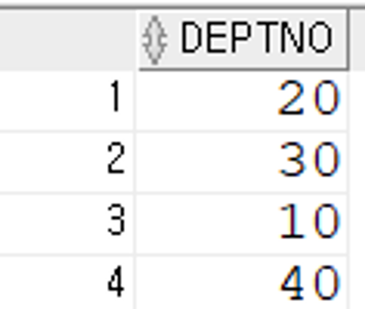 SELECT DISTINCT DEPTNO FROM DEPT; --검색결과: 10, 20, 30, 40, 50