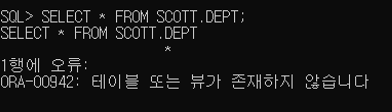 SQL> SELECT * FROM SCOTT.DEPT; --ERROR
