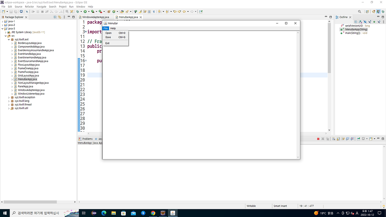 // Frame >> MenuBar >> Menu >> MenuItem 순서로 디자인