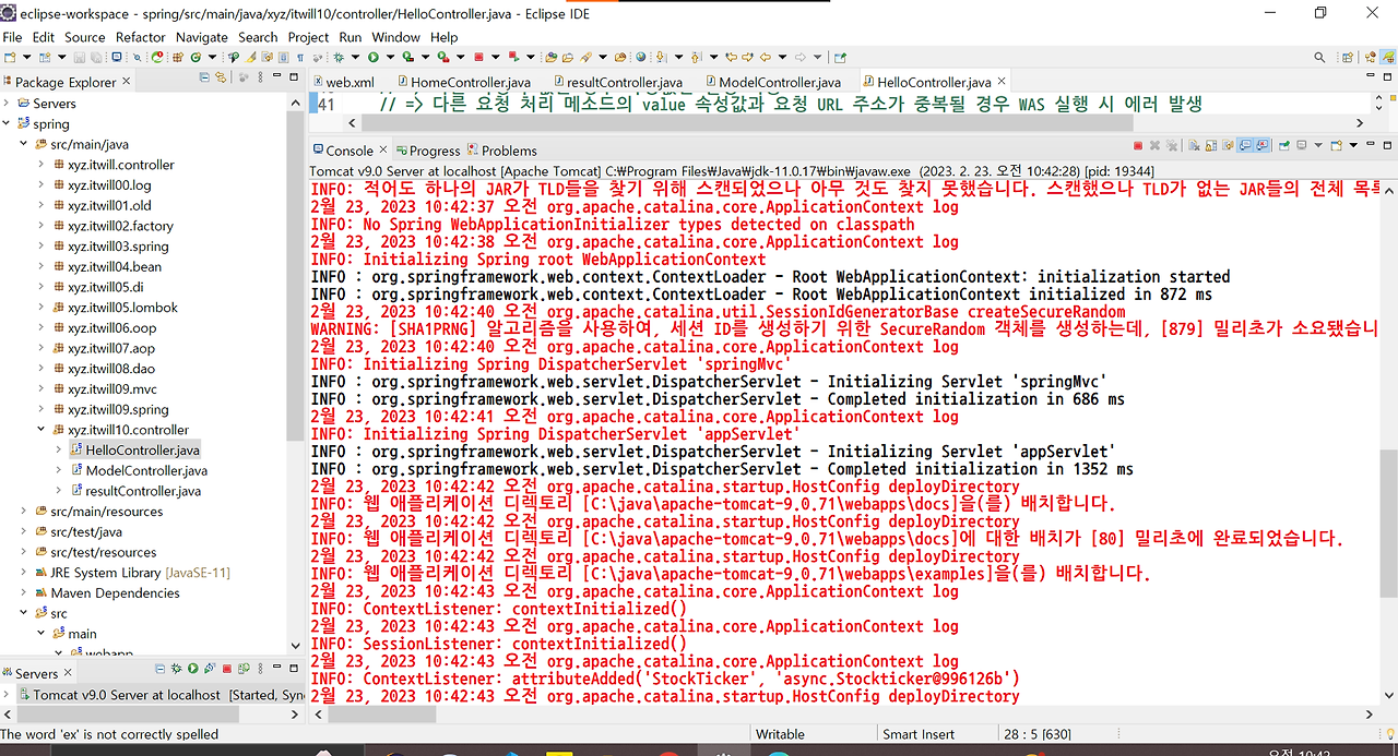 - web.xml 파일을 변경하면 반드시 server restart 해줘야함!!